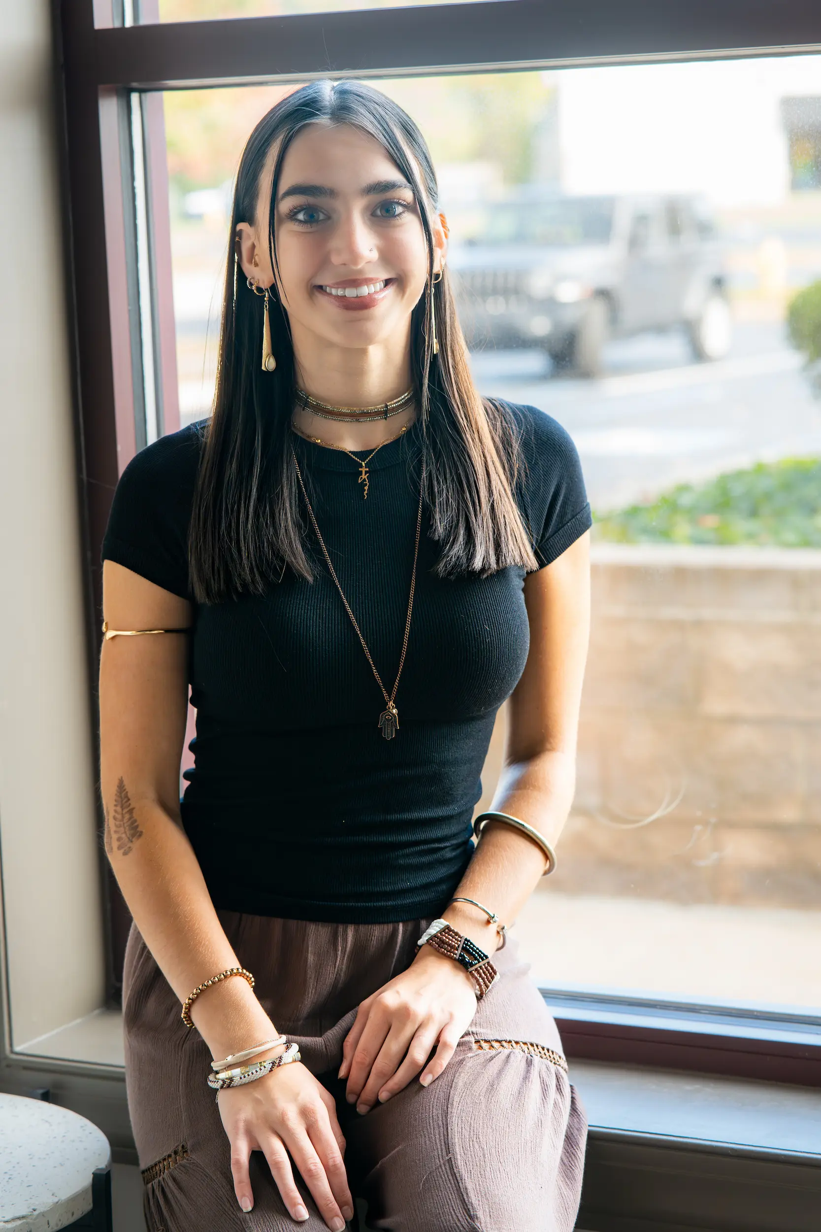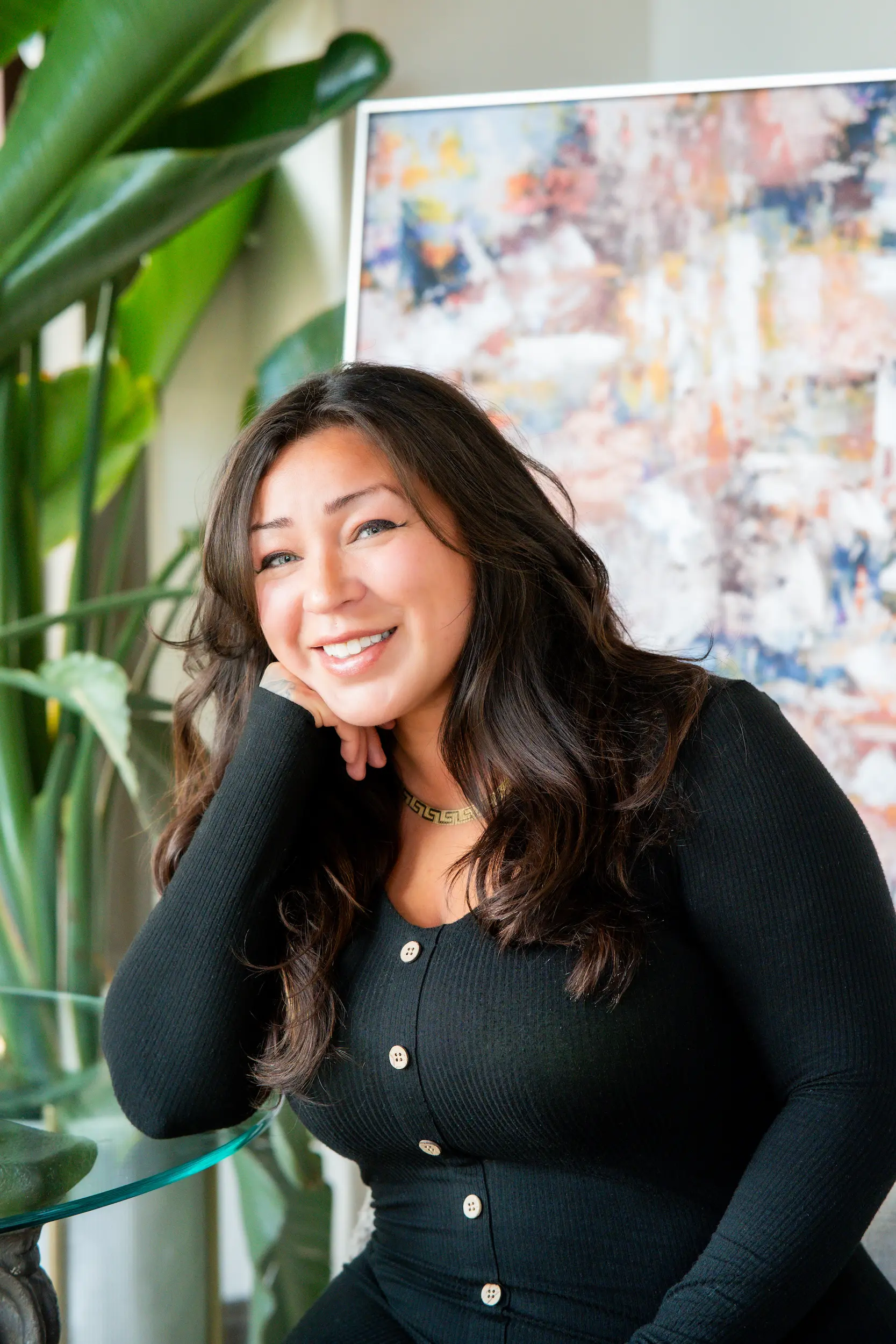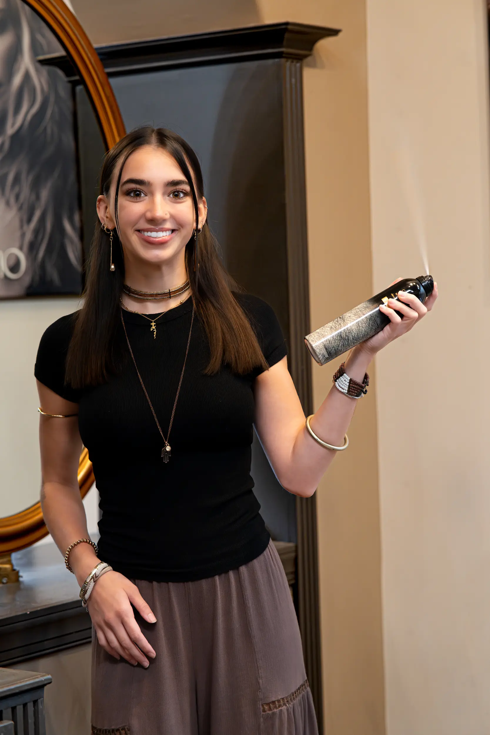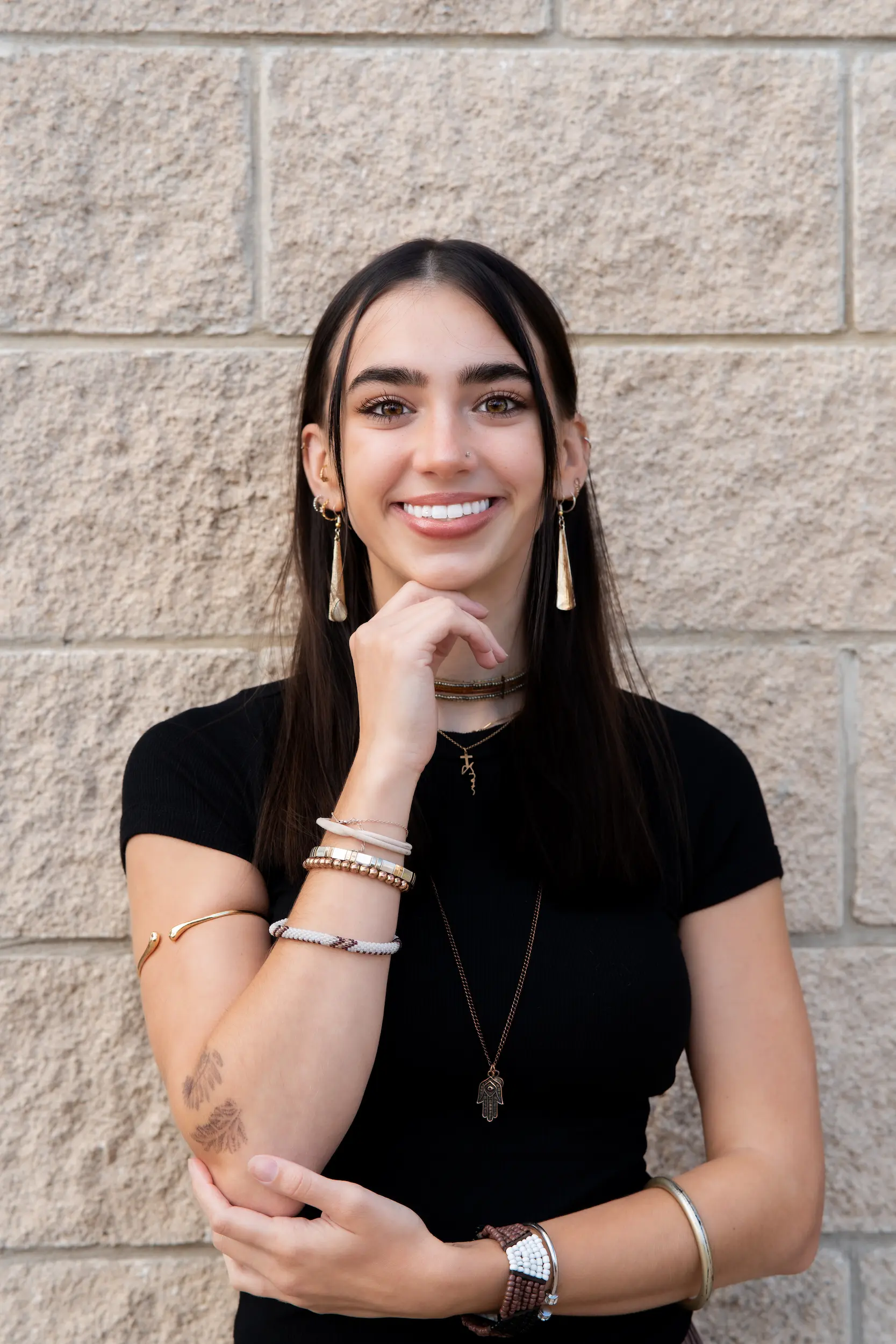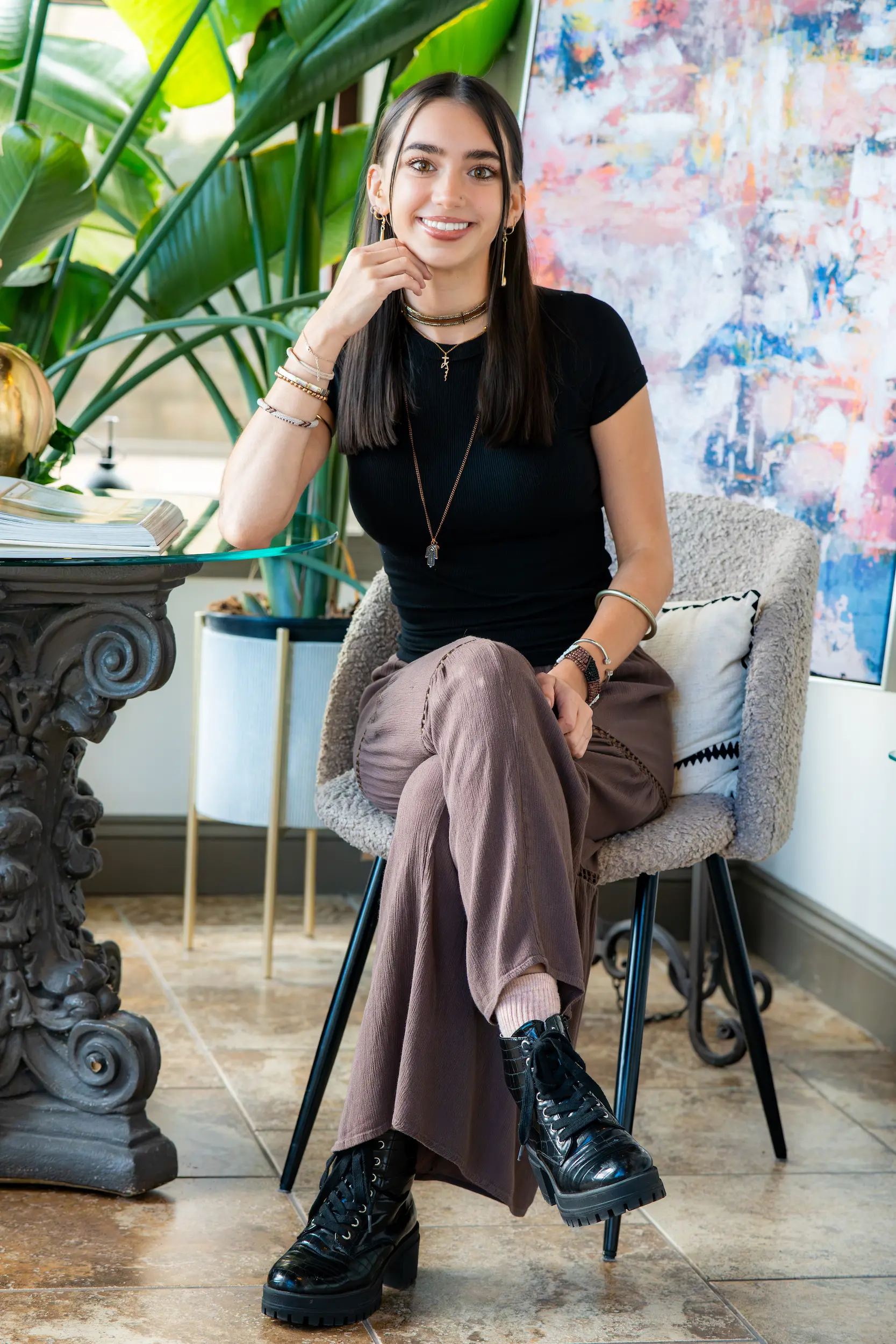 Gigi Bluhm is a stylist with 10 years of experience, known for amazing blowouts, expert eyebrow shaping, and a special talent for working with long, thick hair—turning it into a polished, camera-ready look that frames your face beautifully.